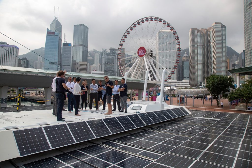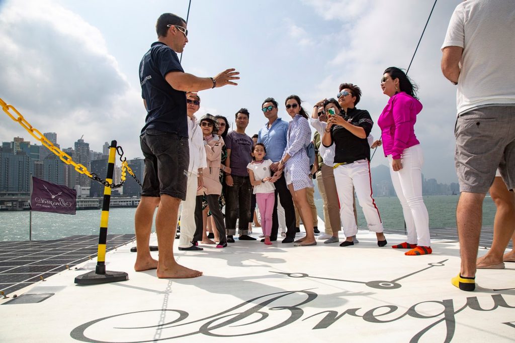 Guests, children and members of the public have been getting guided tours and presentations with Virginie Caron, the stopover manager and members of the sailing crew including the on board engineer, Basil Prime, the technical crew person Anne Le Chantoux, second in command, Erwan Lohezic, steward Christel Brigeot-Mathieu and Captain Jean Marc-Normant.