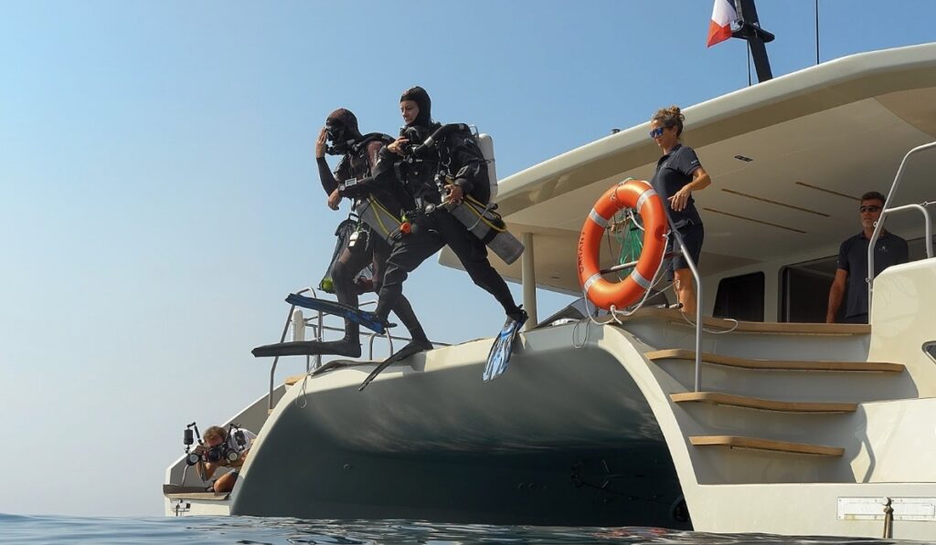 During 19 days at sea, sailing with zero CO₂ emissions thanks to the MODX 70, the Foundation and its partners explored 13 sites along the French Riviera, conducted 25 investigation dives, relocated 8 historical markers, measured 10 lower limits, and collected 15 Posidonia matt samples.