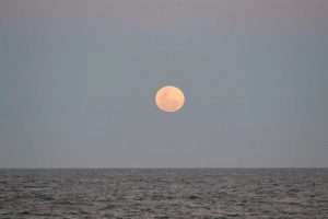 “Smooth seas, calm weather. The first watch is silent, pearly, in the light of the full moon subdued by a light veil of high cloud. These fine weather cirrus unfortunately haven’t brought us the salutary shower of rain we were all expecting, deprived for an indefinite amount of time by our fickle desalinator.