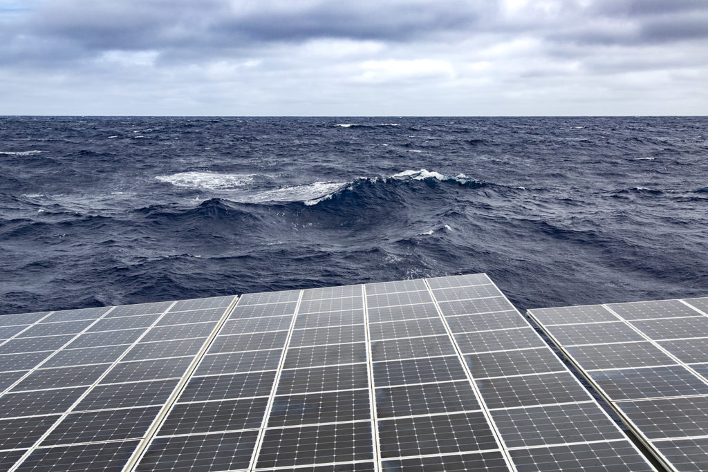 Notre bonne étoile est quand même avec nous, le soleil perce malgré tout et nos batteries se chargent. Notre navire solaire va de l’avant direction… les Fidji ! »