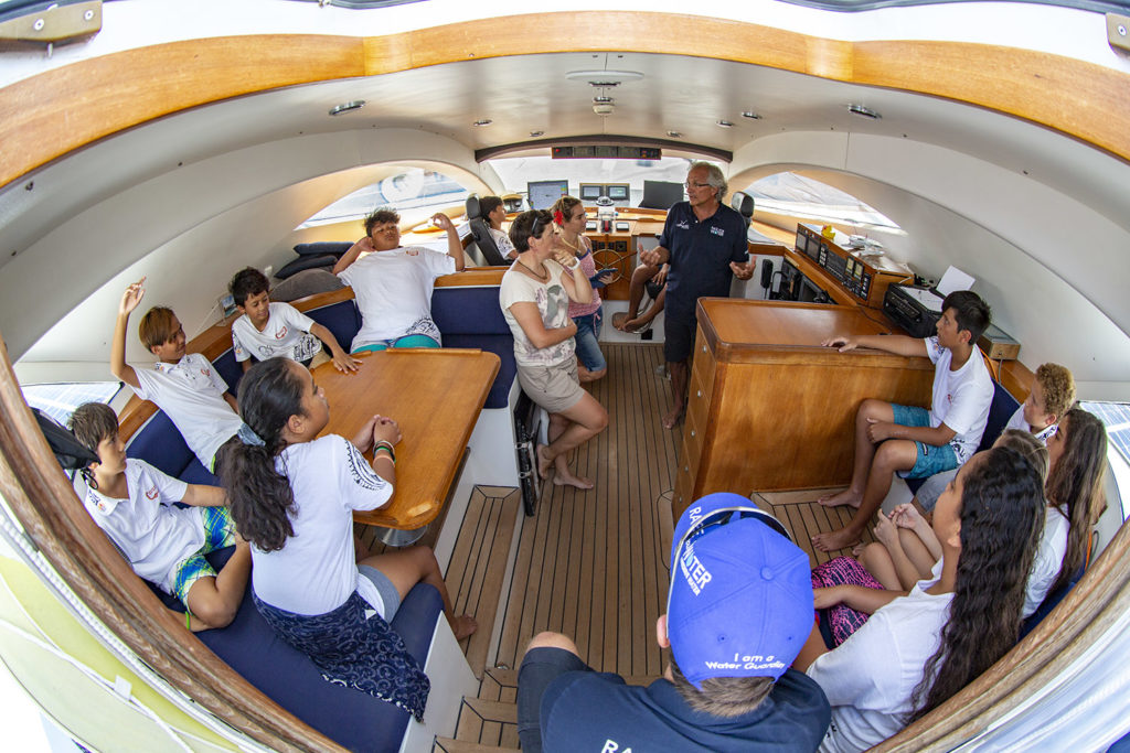 A Papeete, déjà 11 classes de 25 élèves en moyenne sont venues rencontrer les équipages Race for Water et visiter le navire.