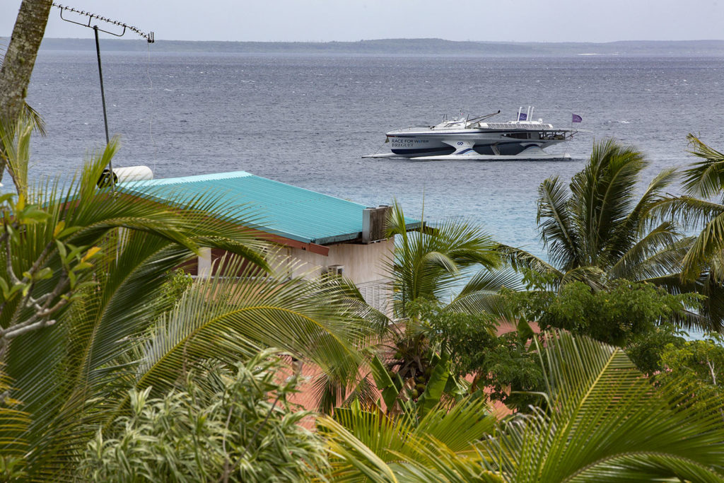 Race for Water, notre catamaran de 35 mètres propulsé par un mixte énergétique – solaire, kite et hydrogène, sera basé pendant 48h à Lifou.