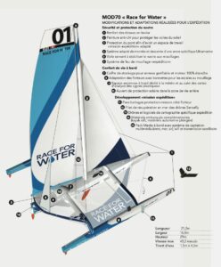 La « Race for Water Odyssey » (R4WO) est partie le 15 mars 2015 de Bordeaux en France.Cette expédition avait pour but d’analyser les plages des îles situées dans le périmètre des 5 gyres océaniques afin d’établir le premier état des lieux global de la pollution plastique des océans et de ses conséquences sur les populations. Afin de faciliter la comparabilité des données collectées, cette mission a pu être effectuée en un temps record de moins de 300 jours grâce au MOD70, un trimaran de course et premier navire « Race for Water ».